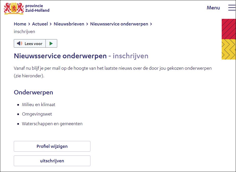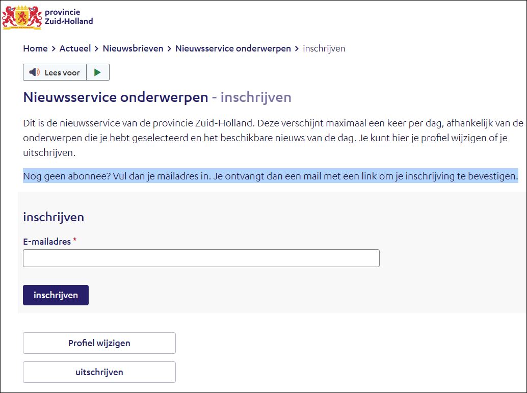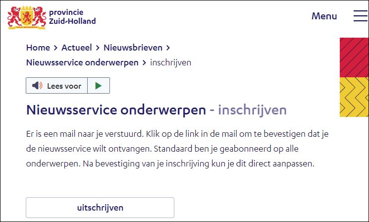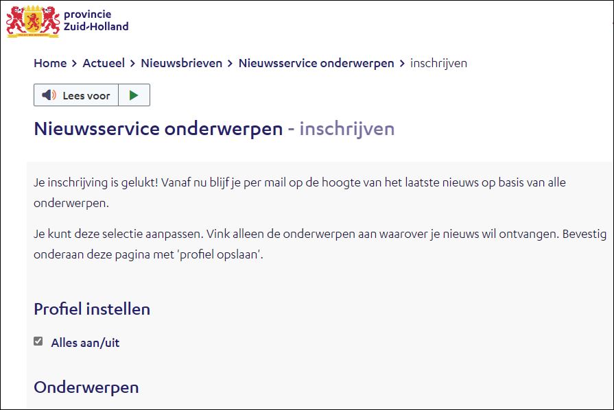 Provincie Zuid-Holland: Nieuwsbrieven en/of een Nieuwsservice per onderwerp