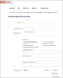Na het inloggen kan je een attendering gaan aanmaken. Twee tabbladen zijn daarbij van belang: