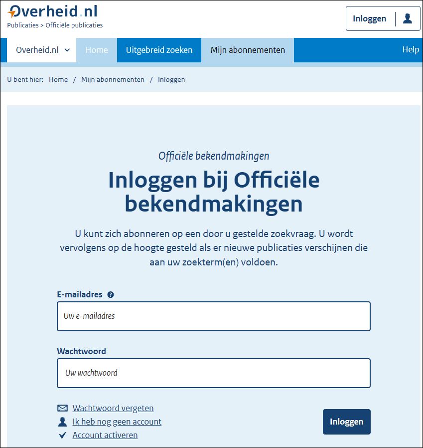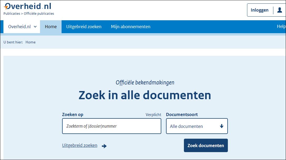 De website van de rijksoverheid komt eerst aan de orde. Hoe te zoeken, een account aan te maken en te attenderen. In dit stuk staan de URL’s die nodig zijn om dit te realiseren. Omdat niet alle volgende stappen vanzelfsprekend zijn is daar een toelichting aan gekoppeld.