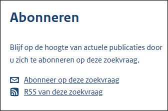 Je kan je ook op deze zoekvraag abonneren. Scrol dan naar beneden tot je aan de linkerkant in de kolom “Filter resultaten” het kopje “Abonneren” tegenkomt.